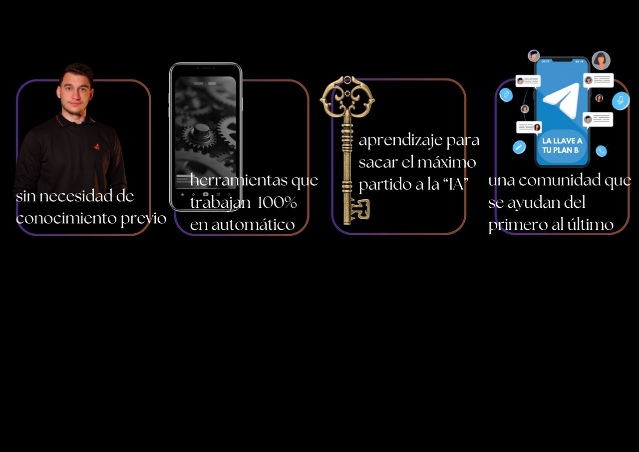En el video lo explicamos al detalle para que no confundas nada. Pero resumidamente Robots que invierten en bolsa, formas de ganar dinero con inteligencia artificial, crear marca personal y emprendimiento, afiliación con beneficios en $$ a tu cuenta y masterclass en directo semanales